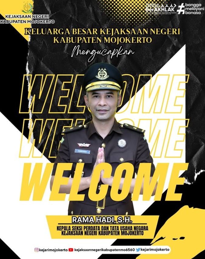 Keluarga Besar Kejaksaan Negeri Kabupaten Mojokerto mengucapkan selamat datang dan selamat bertugas kepada Bapak Rama Hadi, S.H. sebagai Kepala Seksi Perdata dan Tata Usaha Negara (Kasi Datun) yang baru.