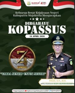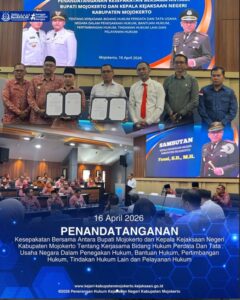 Semoga amanah dalam menjalankan tugas dan tanggung jawab yang diemban, mampu memberikan kontribusi terbaik, serta semakin memperkuat sinergi internal maupun eksternal dalam memberikan pelayanan hukum yang profesional, responsif, dan berintegritas bagi masyarakat dan negara, khususnya di wilayah Kabupaten Mojokerto.